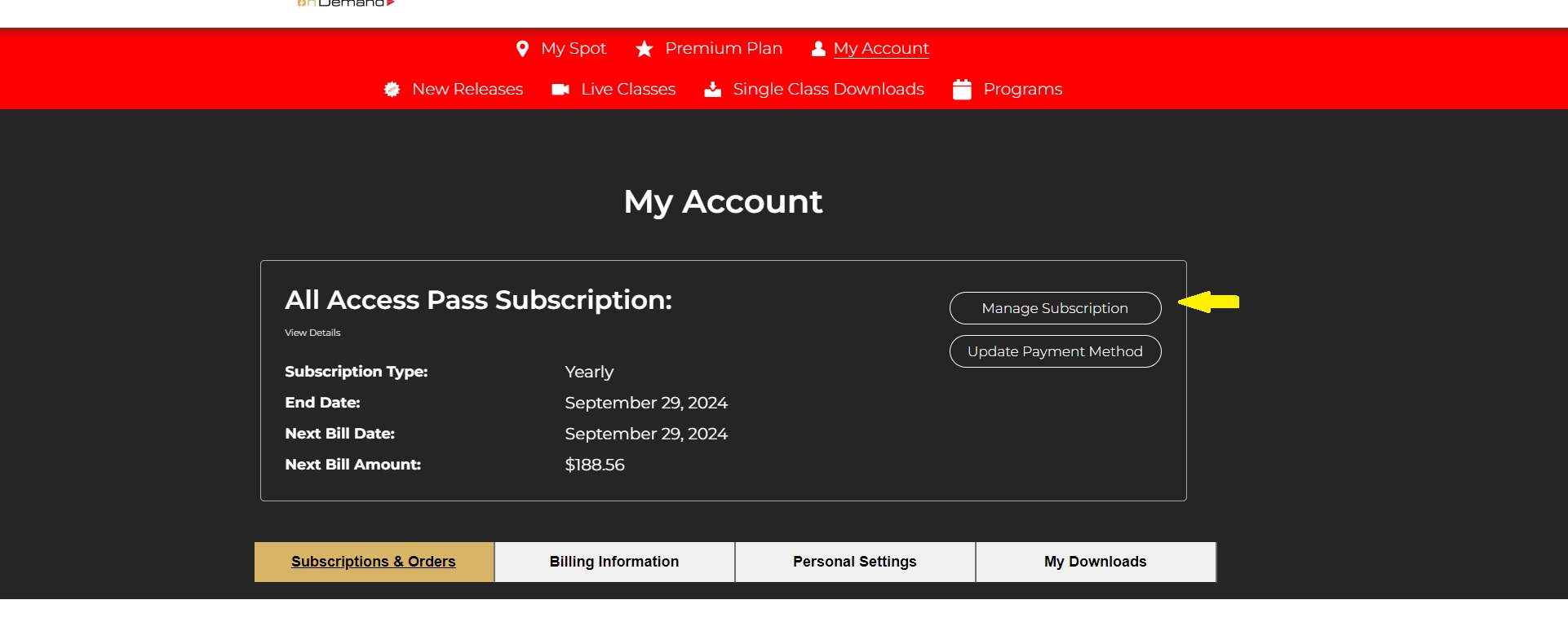- My Account – View and update any personal account information, change your password, update your All Access Pass type, update payment information etc!